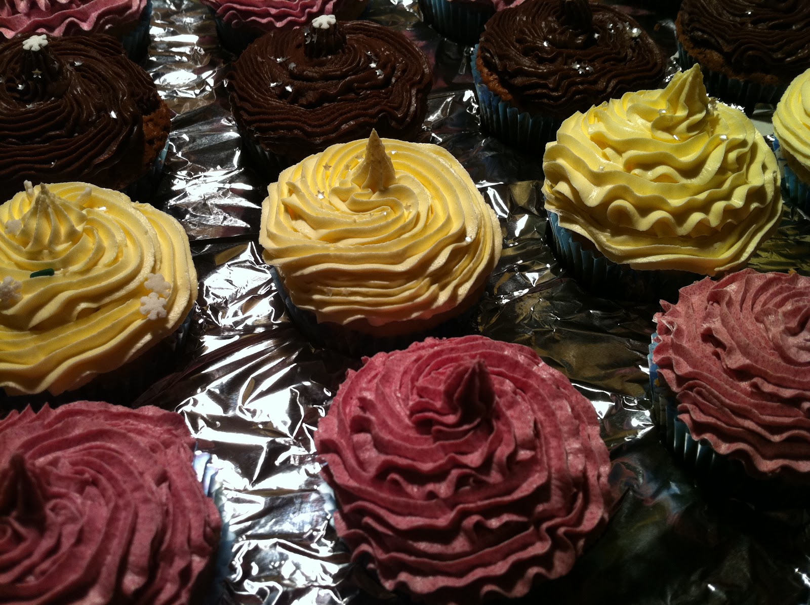 Los de limón los cubrí con buttercream de limón unos, y otros con buttercream de grosella. Los de chocolate los cubrí con una crema de chocolate. Tengo que decir que a todos aquellos que los probaron les encantaron!!! O al menos eso me dijeron... Je,je...