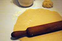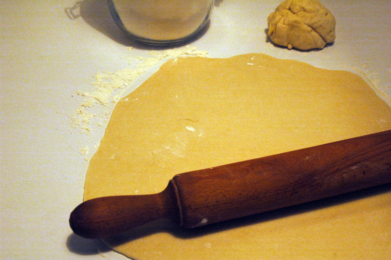 5.Enharinar un poco la mesa de trabajo y estirarla utilizando el rodillo de cocina. Dejarla finita, y que veamos que va a cubrir la totalidad del molde que hayamos escogido.