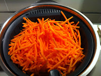 2.Colocar la zanahoria rallada en el cestillo y resrvar (Si las zanahorias no son ralladas introducir en el vaso y picar 4seg,Vel.5.).
