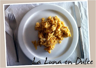 10.Mientras se van haciendo los huevos no paramos de remover. Hasta que ya estén las huevos hechos, y todo perfectamente integrado.