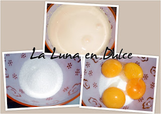 3.En un bol aparte, poner las yemas y el azúcar, y batir bien, hasta adquirir una mezcla blanquecina. A esto añadirle poco a poco la mezcla de chocolate anteriro, mientras vamos batiendo para mezclarlo.