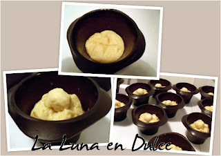 8.Pasadas las 2 horas, volcamos la masa en una superficie con harina espolvoreada y le vamos dando la forma deseada. En este caso los he colocado en moldes individuales de silicona.
