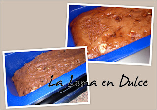 5.Introducimos el molde en el horno ya caliente. Horneamos 10 minutos a 200º y luego bajamos la temperatura a 180ª y lo dejamos otros 10 minutos.