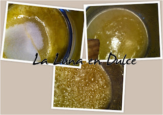 9.En un cazo poner a calentar a fuego medio la mantequilla con la cucharada de azúcar restante, y dejar reducir unos minutos, hasta que adquiera un color caramelo claro.