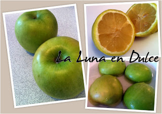 3.Quitar el corazón de las manzanas y cortarlas por la mitad. Sumergir las mitades de las manzanas en el agua con limón, así evitaremos que se pongan marrones.