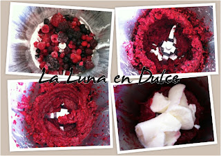 2.Añadir la fruta congelada, en este caso frutas del bosque, y triturar 30 seg, Vel 5-10.