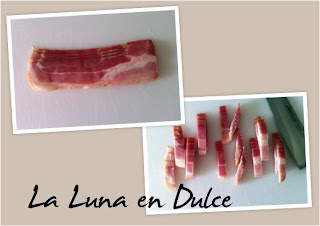 2.Cortar el beicon en tiras.