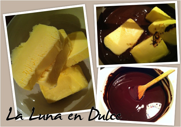 2.Derretir en un bol en el microondas el chocolate. En tandas de 1minuto al 50% de potencia del microondas.