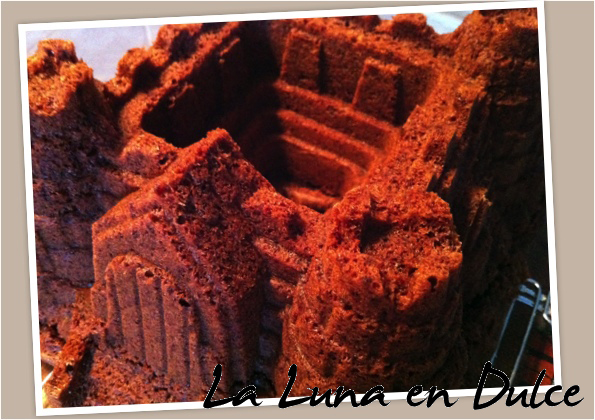 Buenas tardes! La verdad es que esta receta originariamente era para un "Chocolate layer cake" pero me gustó tanto la receta del bizcocho solo, que no me pude resistir a estrenar este fantástico molde. La receta la se la vi a Bea, en El rincón de Bea. Y bueno, os reconozco que como me ha gustado tanto como ha quedado este castillo que sin duda probaré a hacer ese "Layer cake" que Bea hizo. Así que proximamente os lo pondré por aquí, a ver que tal sale...