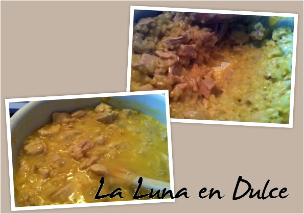 Yo no utilicé los 600ml de caldo, aproximadamente unos 450ml, puesto que ya el arroz estaba en su punto y con más líquido se hubiera pasado.
