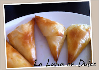 Buenas tardes. La receta de hoy se trata de una receta ideal para una cena o una fiesta, puesto que salen un montón de triangulitos de estos, y con el relleno de queso le gusta a todo el mundo!! O casi... Je,je...Por cierto, es una receta de origen griego.