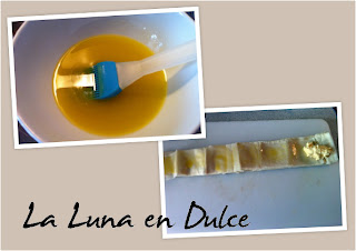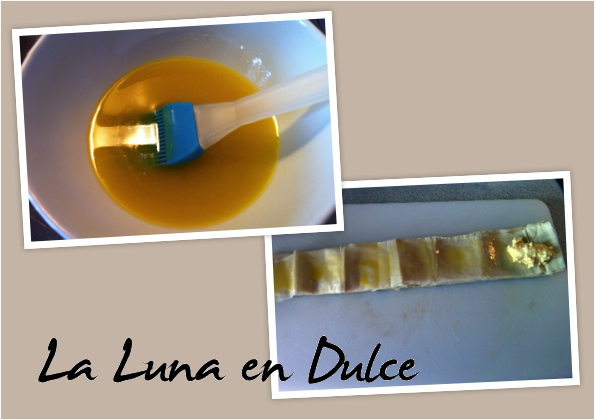 6.Pintar la primera tira con un poco de la mezcla de aceite y mantequilla.