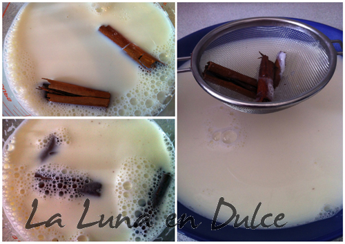 1.Poner en un bol apto para microondas la leche, con el azúcar y la canela, e introducir en el microondas a máxima potencia hasta que empiece a hervir.