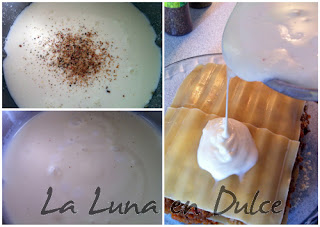 18.Cubrir con la bechamel reservada, y cubrir la bechamel con lo que nos queda de queso parmesano.