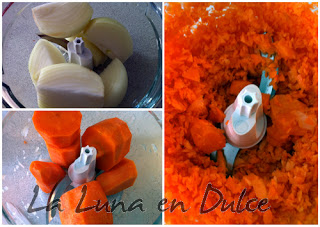 1.Empezamos con el ragú de carne. Picar la cebolla, la zanahoria y el api de la manera que más os guste, yo opté por la picadora, y cortar el bacon en trocitos.