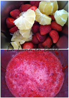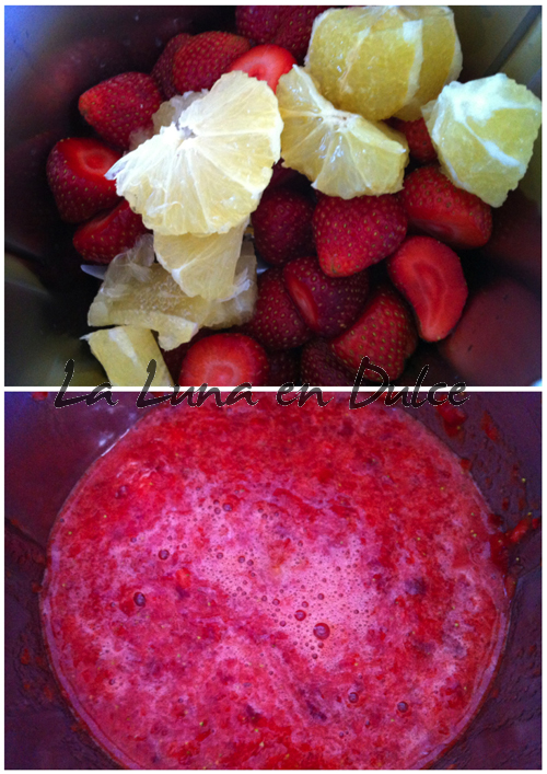 1.Introducir las fresas y el limón y picar 8seg, Vel.5.
