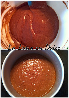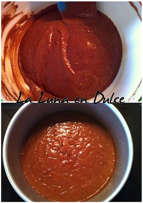 7.Engrasar y enharinar un molde de unos 22cm de diámetro, y verter la mezcla dentro.