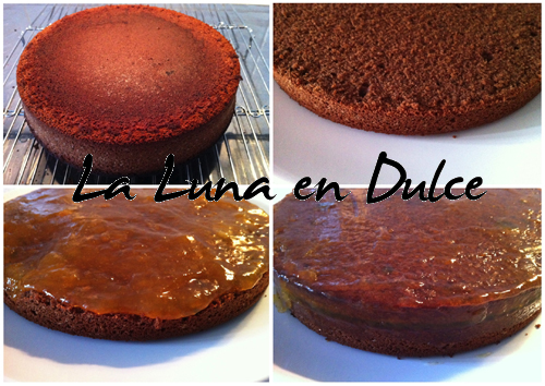 10.MONTAJE: Cortar el bizcocho en dos capas una vez frío, y untar con la capa inferior con mermelada de albaricoque.