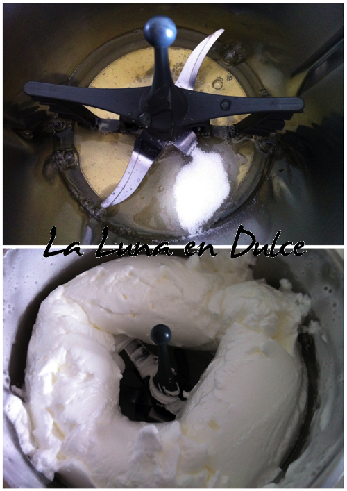 1.BIZCOCHO: Colocar la mariposa en las aspas, y verter en el vaso las claras, el azúcar y la sal, y programar 4min, Vel.4. Volcar en un bol y reservar.