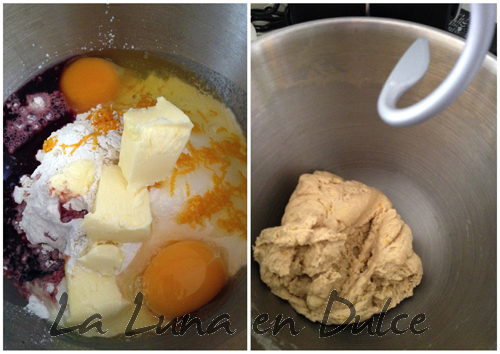 1.Para preparar la masa, poner todos los ingredientes en el robot de cocina y trabajarlos hasta obtener una masa homogénea.