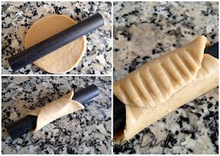 3.Con la ayuda de cilindros de acero, que ya habremos engrasado con un poco de mantequilla, enrollar los círculos de masa. Para INTENTAR que nos se nos abran al freír, sellar con unas gotas de agua entre las dos partes de masa y luego apretando con un tenedor.