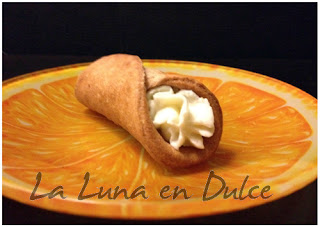 Buenas tardes!! Ya tenemos otro reto "One for all", y en esta ocasión se trata de un dulce típico italiano. Los cannoli, desde antiguo, han pertenecido a los dulces carnavalescos típicos de la cocina italiana. No obstante, es creencia popular de la región que son herencia de la permanencia de los árabes en la isla. Hoy en día se comen durante todo el año. Originariamente la pasta se enrollaba alrededor de un trozo de caña (actualmente se compra la parte exterior ya hecha, o se enrolla en moldecitos de metal que ya se venden para esto) y se freía con ella, luego se rellenaba con el requesón azucarado y aromatizado. De "caña"—en Italiano, canna—es de donde le viene el nombre.