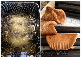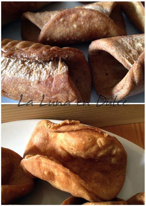 Por cierto, aviso que para mi gusto la masa quedó demasiado gruesa, y eso que la dejé finita, pero la próxima vez utilizaré la máquina para hacer pasta, que es lo que lo puede dejar más fina aun. Sólo para que lo tengáis en cuenta si tenéis pensado hacerlos.