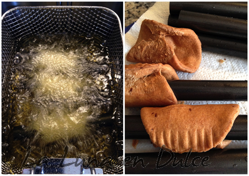 4.Calentar abundante aceite de girasol en una sartén honda, o como en mi caso, en la freidora, y freír los cannoli, hasta que estén dorados y crujientes.