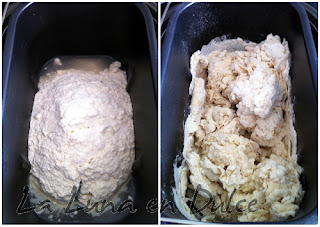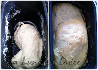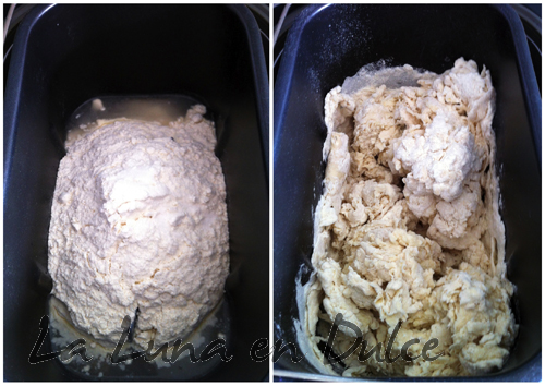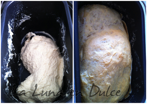3.Cuando la panificadora termine de amasar y comience con el primer levado, yo quito las paletas de amasar, así saldrá el pan mucho más facilmente.