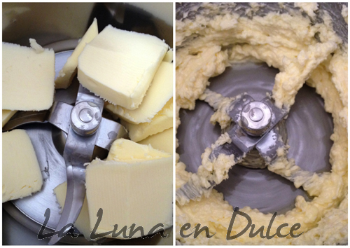 1.Introducir la mantequilla en el vaso, y batir unos 30seg, a Vel.3-4, hasta que esté a punto pomada.