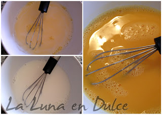 5.Mientras, en un bol poner el vaso de leche y diluir el sobre de flan.