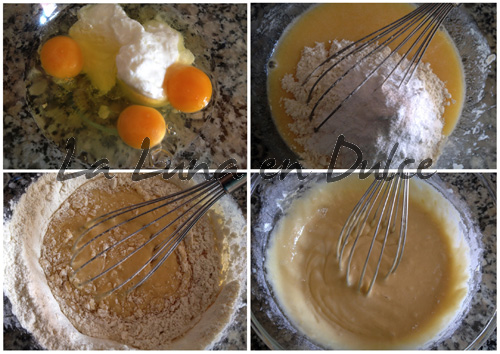 Os informo que para esta receta no he utilizado ninguna batido eléctrica, lo mezclé todo con la varilla manual, como podéis ver en las fotos.