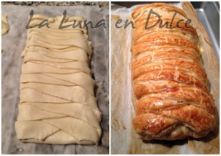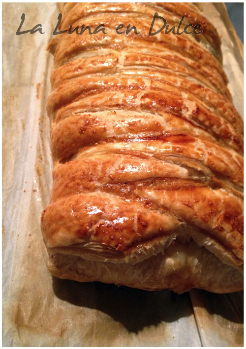 7. Introducir la trenza en el horno ya caliente, y hornear durante unos 25 minutos aproximadamente, hasta que el hojaldre haya crecido y se haya dorado.