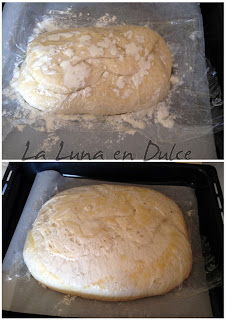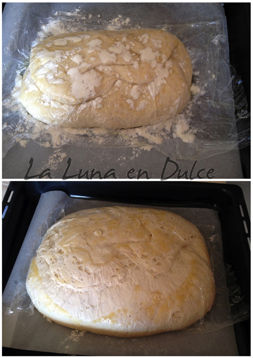 6.Pintar la superficie con un poco de aceite, cubrir con film plástico y dejar reposar 30 minutos.