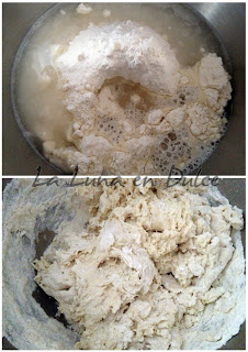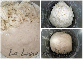 1.Poner todos los ingredientes en el bol salvo la masa madre, y amasar un poco, y cuando estemos a mitad del amasado añadir la masa madre y terminar de amasar.