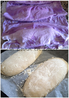 4.Dar la forma deseada a los panes, redondo o barra corta, Colocar sobre el papel para horno, en la bandeja del horno, tapar con un paño húmedo y dejar reposar durante 3 horas, o hasta que haya doblado el volúmen.