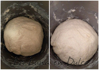 3.Volcar la masa sobre la mesa de trabajo, dividir en dos y dejar reposar 15minutos.