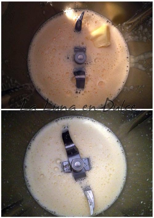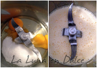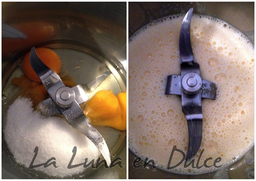 2.Introducir los huevos y el azúcar, y batir 2min, Vel.4.