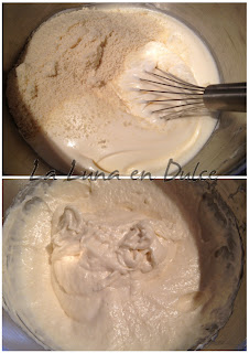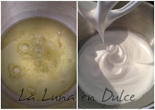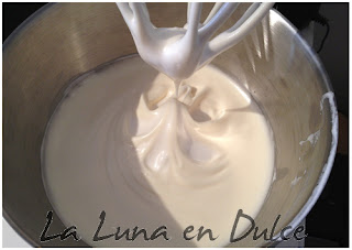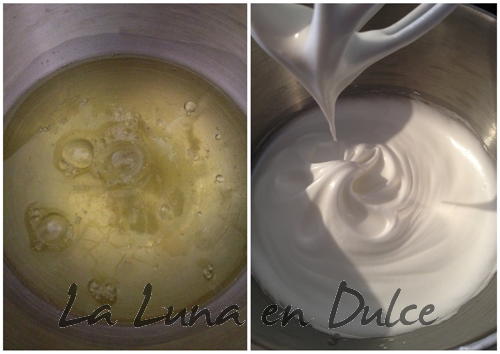 4.Continuar batiendo e ir añadiendo el azúcar cucharada a cucharada hasta haberlo agregado todo, haciendo así un merengue bien firme.