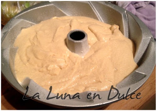10.Hornear durante unos 45 o 50 minutos, o hasta que veamos que al introducir un palillo en el centro del bizcocho éste salga limpio.