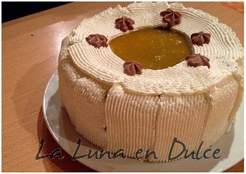MONTAJE DE LA TARTA: Es aconsejable hacerlo al menos 1 día antes de consumirla, yo lo hice la noche anterior de ir a trabajar, que es a donde la llevé para que la probaran (como casi todo lo que hago. Ji,ji,ji...)