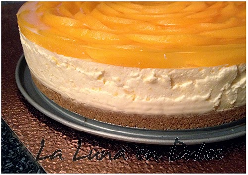 Este mes la letra escogida fue la "F", y con esta letra se ha escogido la FRUTA como ingrediente, cualquiera que nos apetezca. Así que yo me decanté por esta deliciosa Cheescake de Melocotón.