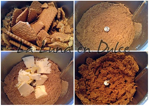 12.Verter sobre la base de galletas, y volver a meter en la nevera.