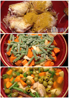 ¡¡Buenos días!! Jueves, ya casi tenemos terminada la semana. Pues hoy os traigo otra receta para el Taijne, en este caso de pollo y verduras. Vi esta receta en el blog Contigo en la playa, y me enamoró con solo verla. Yo le he añadido las aceitunas, y le he cambiado alguna cosa, pero me encanta. El pollo queda tierno y jugoso, y todo envuelto en un sabor espectacular. Además es la mar de sencilla.