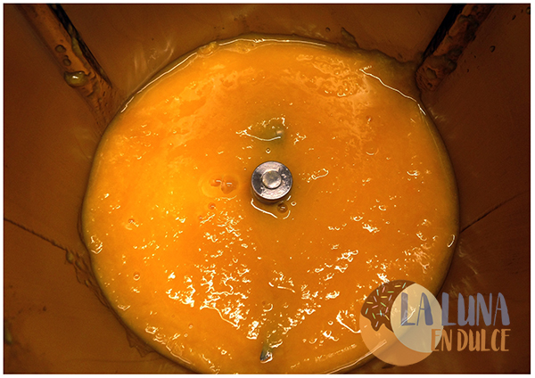 11. Ahora añadir el puré de melocotón y dejar que la mezcla se caliente un poco sin llegar a hervir.
