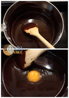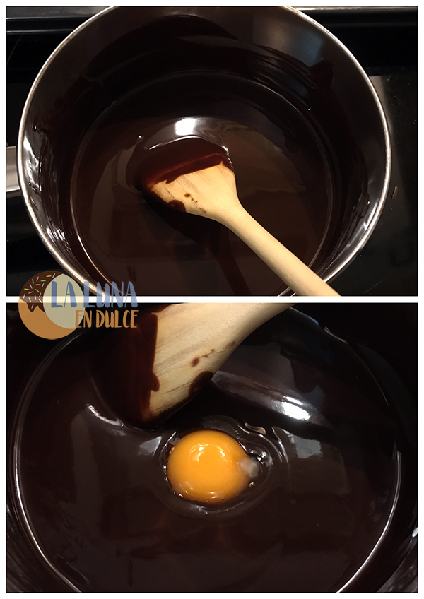 3. Cuando ya esté bien derretido, apartar del fuego. Ahora ir agregando las yemas de huevo de 1 en uno, mezclando bien entre cada yema.