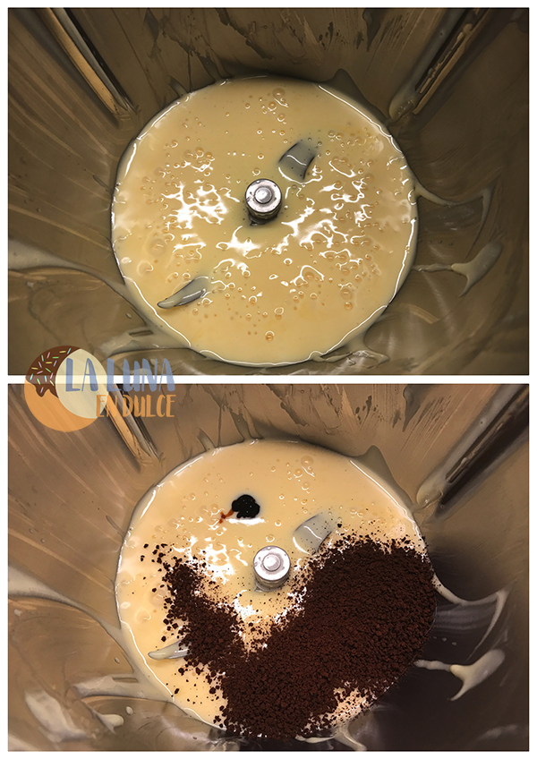 13. Verter la vainilla y el café soluble, y mezclar unos segundos a Vel.4-5.