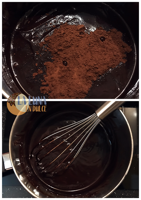 4. Ahora verter el cacao en polvo, y mezcla bien. Reservar.