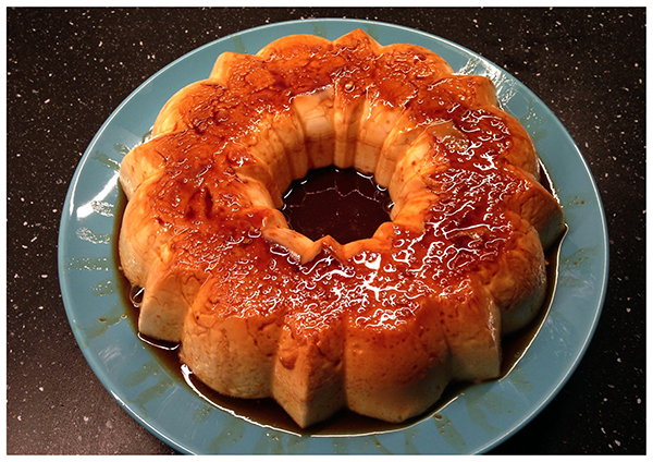Lo curioso de la elaboración de este flan, es que en vez de usar un molde de flan clásico, lo hice en un molde de Bundt Cake. Lo peor de haber usado este molde es a la hora de desmoldar, porque al ser tan grande respecto al tamaño del flan, me temía que se rompiese al caer o al despegarse de las paredes, pero de la manera en que lo hice no tuve problema ninguno.