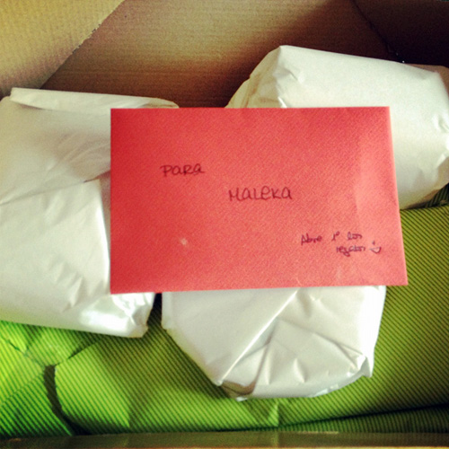 Esto fue lo que encontré cuando abrí el paquete, todo en vuelto y colocadito, y eso que ha viajado miles de kilómetros desde Alcalá de Henares.